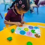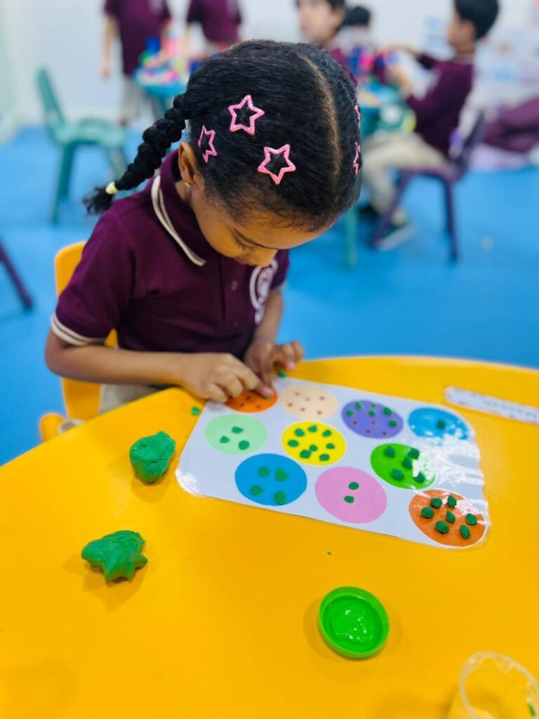 They are given ample opportunities to draw and paint whatever they like in the classroom, under the supervision of experienced teachers. Kids are also taught how to solve puzzles, cut and paste figures, build block castles and play with dough.