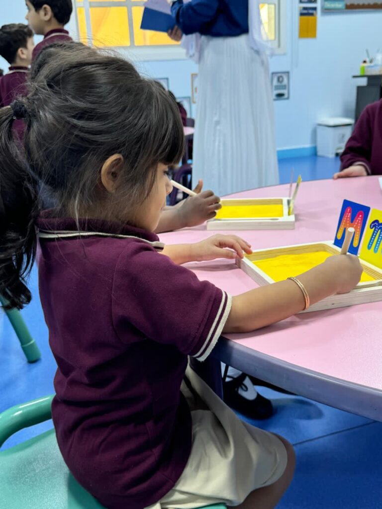 The foundation of letters and sounds is laid during kindergarten years. Children will identify names, write all letters of the alphabet, and know the right sound for each letter.